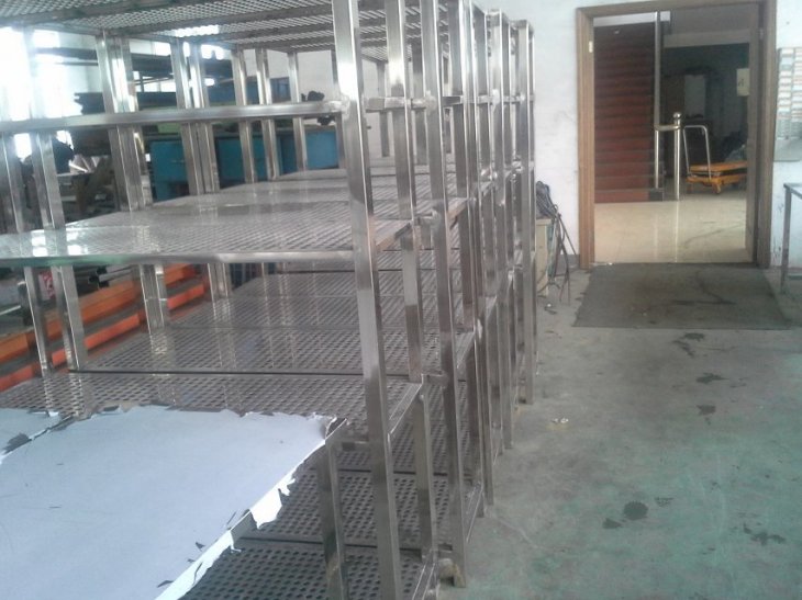 不锈钢货架是采用不锈钢材料为主要原料加工而成的货架。此种货架耐腐蚀、不生锈。可在潮湿、腐蚀性强的地方长期使用!