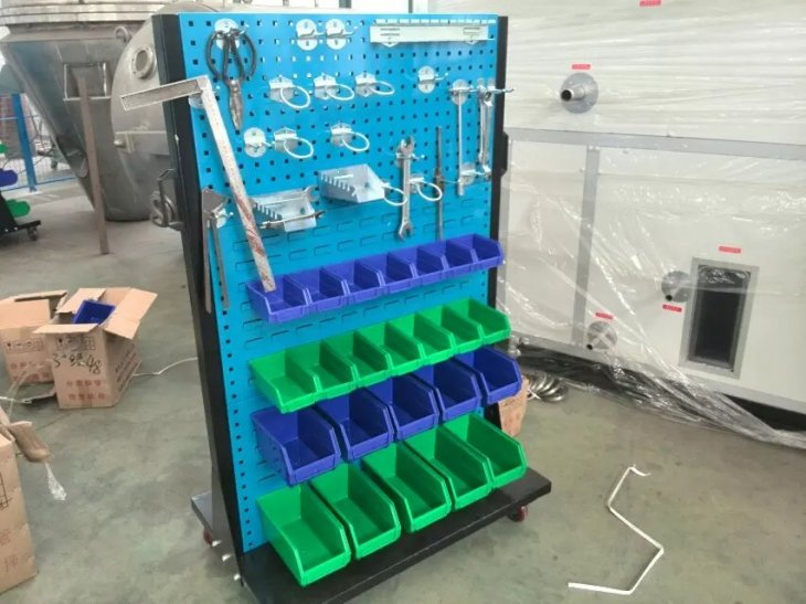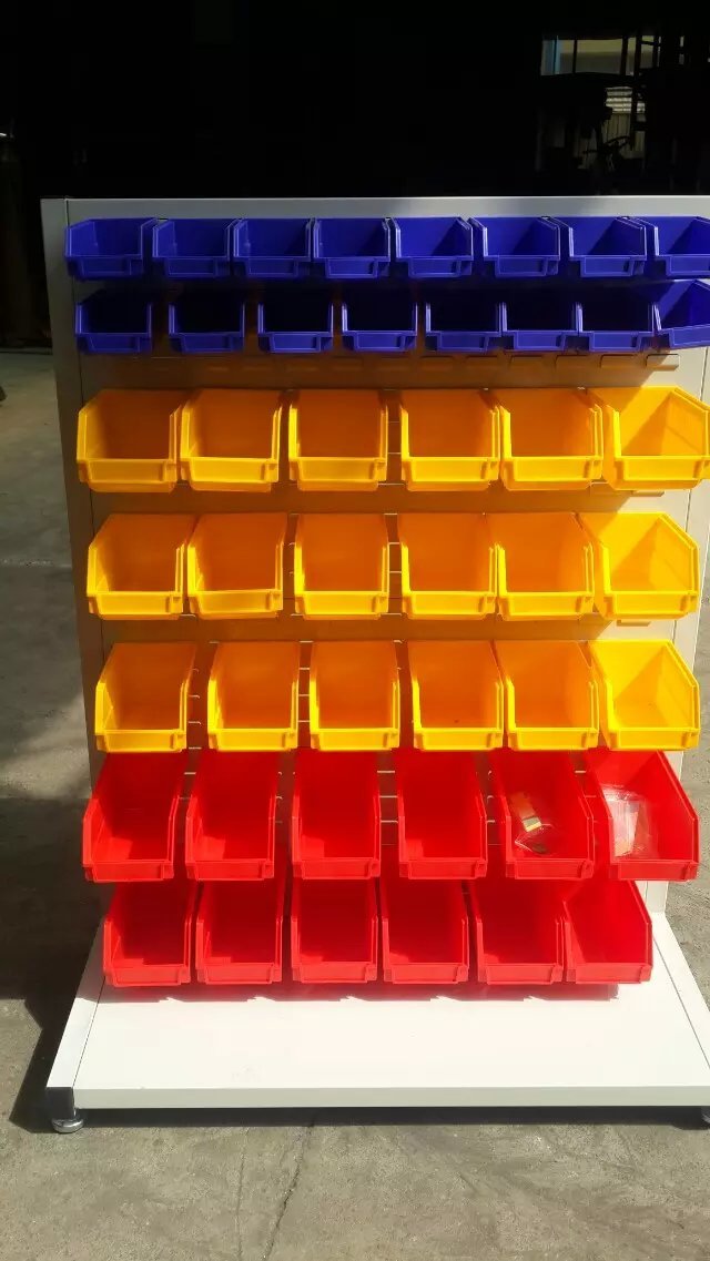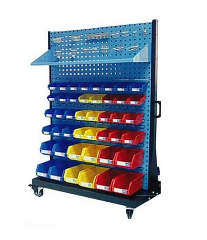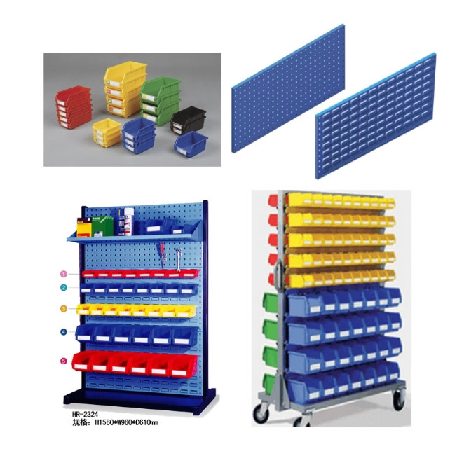 物料整理架物是以方孔挂板和百叶挂板为主要部件,结合背挂零件盒、挂钩、棚板等多种配件使用。对您生产现场的小型少量多样的工具、物料进行分类存放、方便搬运归位、充分利用空间,整洁高效。 物料架用途描述:结合背挂零件盒及多用途的挂钩配件,不但适合各种类型的物料整理,更适合小型物料、工具、零件及各种异型物品的保管分类,充分有效地利用空间。 挂钩与方孔挂板配合使用,可任意变换孔位,定位快捷,安全稳固,满足各类工具的定置管理,节省找寻时间;背挂零件盒与百叶挂板配合使用,吊挂容易,配有色彩标签,小型物料、零件可利用色彩管理分类储存。