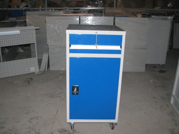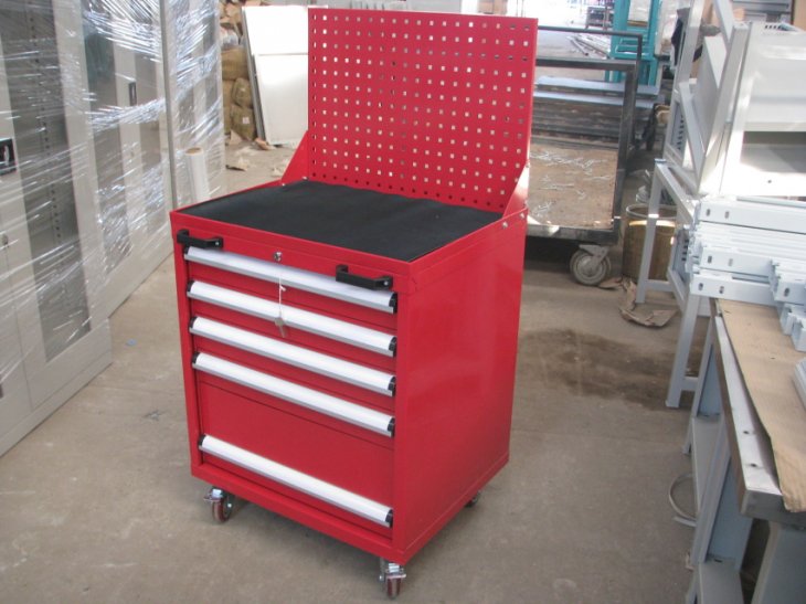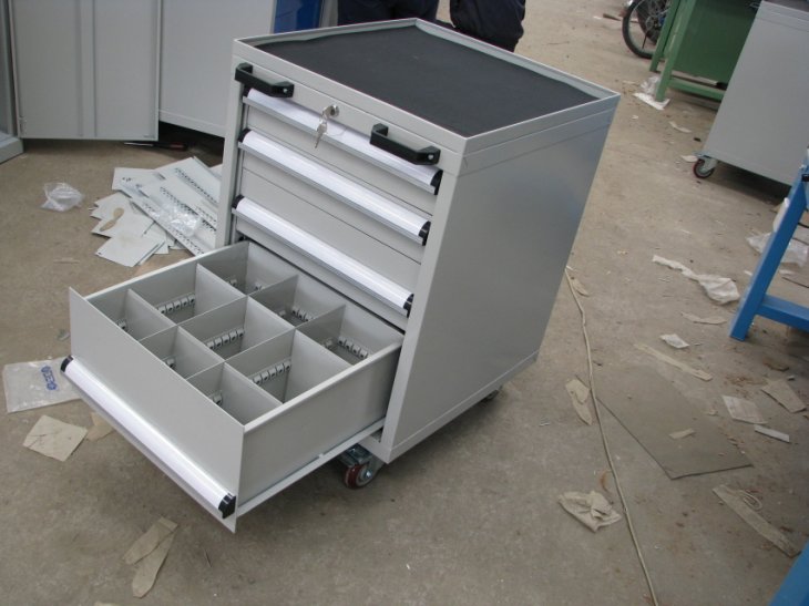 工具车由各种型号的工具柜增加顶柜和脚轮等移动部件组成。