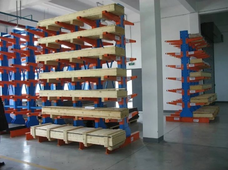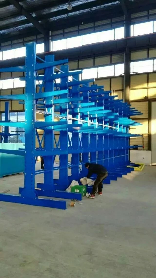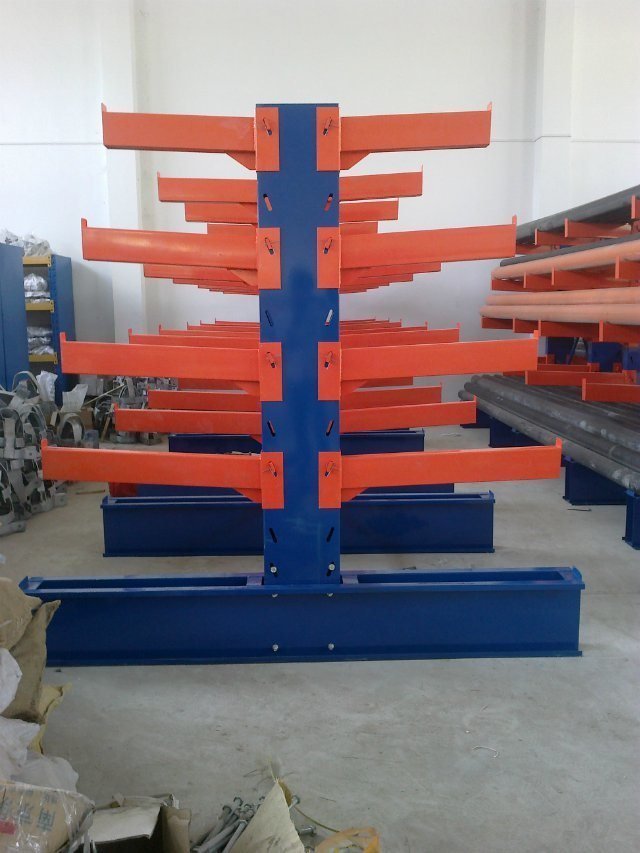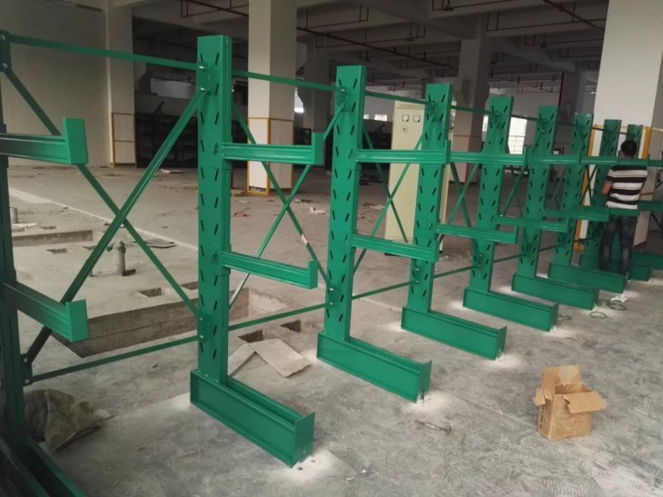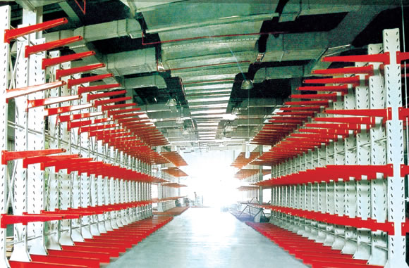 悬臂式货架主要由立柱片、悬臂梁、连接杆等组成,其特点是前伸的悬臂结构轻巧,载重力强,对存放不规格或是长杆件物料,能大幅度提高仓库的利用率和工作效率,悬臂可是单面或双面。增加了木板或钢格板后,特别适合空间小、密度低的库房,管理方便、视野开阔。广泛用于机械加工及建材超市行业。 产品优点: 1、悬臂货架系列全部采用组合式,拆装,运输,调节,移动等简易方便,安全可靠。 2、采用可调式立柱,可根据实际需要调节隔板之间的间距和增减隔板。 3、可充分提高空间利用率,使仓库物资管理规范化,标准化,与堆垛机或叉车相配套,既能提高物资流通效率,降低储运费用,增加经济效益,又能提高物资流通的机械化水平,减轻劳动强度,改善劳动条件。 4、悬臂货架长度可根据场地情况,自由组合。