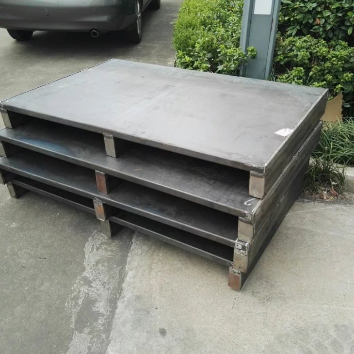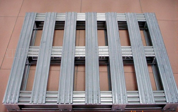 托盘(Pallet)是用于集装、堆放、搬运和运输的放置作为单元负荷的货物和制品的水平平台装置。一般用木材、金属、纤维板制作,便于装卸、搬运单元物资和小数量的物资。托盘的种类主要有木质的,塑料的,金属等材料 木质是现在使用较广的,因为其价格便宜、结实;塑料托盘比较贵点,载重也较小,但是随着塑料托盘制造工艺的进步,一些高载重的塑料托盘已经出现,正在慢慢的取代木质托盘。金属托盘结实耐用,缺点是易腐蚀,价格较高。 钢托盘(钢制托盘)是传统木托盘、塑料托盘的理想换代产品,适合叉车作业,存取货物方便. 主要用于多用途的地面存储、货架存储及货物联运、周转等超轻金属托盘系列。集装、堆放、搬运和运输的放置作为单元负荷的水平平台装置。是现在工业重要的仓储与运输辅助设备之一。 主要材料为钢材或镀锌钢板,经专用设备成型,各种型材互相支撑,铆钉连接加强,再经CO2气体保护焊焊接而成。
